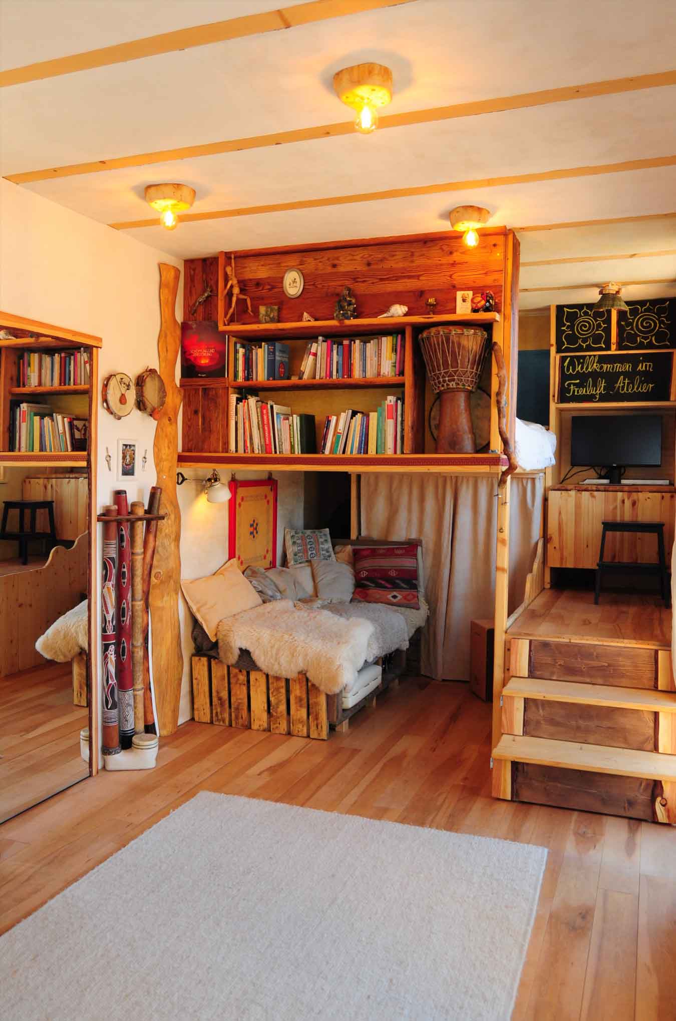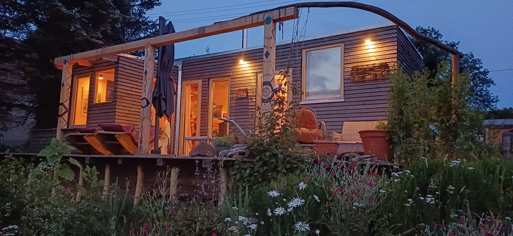 ...denn "All you need is less". Mit diesem Lebenskonzept leben wir im selbstgebauten Tiny Haus auf ca. 24m² und viel Natur drumherum als erweiterter Wohn-/Lebensraum. Wenn du für deine künstlerische (R)Auszeit unser Tiny Haus wählen möchtest, dann kannst du uns gerne kontaktieren.