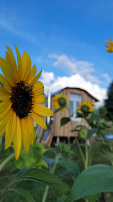 2025 haben wir im Rahmen des Gartenwettbewerbs "Gärten für die Artenvielfalt" den Preis für "gelebte Permakultur" verliehen bekommen. Beim Besuch der 10-köpfigen Jury war das Erstaunen darüber groß, dass solch eine Vielfalt in nur 4 Jahren entstanden ist. In diesem naturnahen Garten mit dem Fokus auf heimischen Wildpflanzen, einem Streuobstacker und Mischwald, gedeihen alle Pflanzen gemäß ihrer Eignung für die verschiedenen Vegetationszonen.