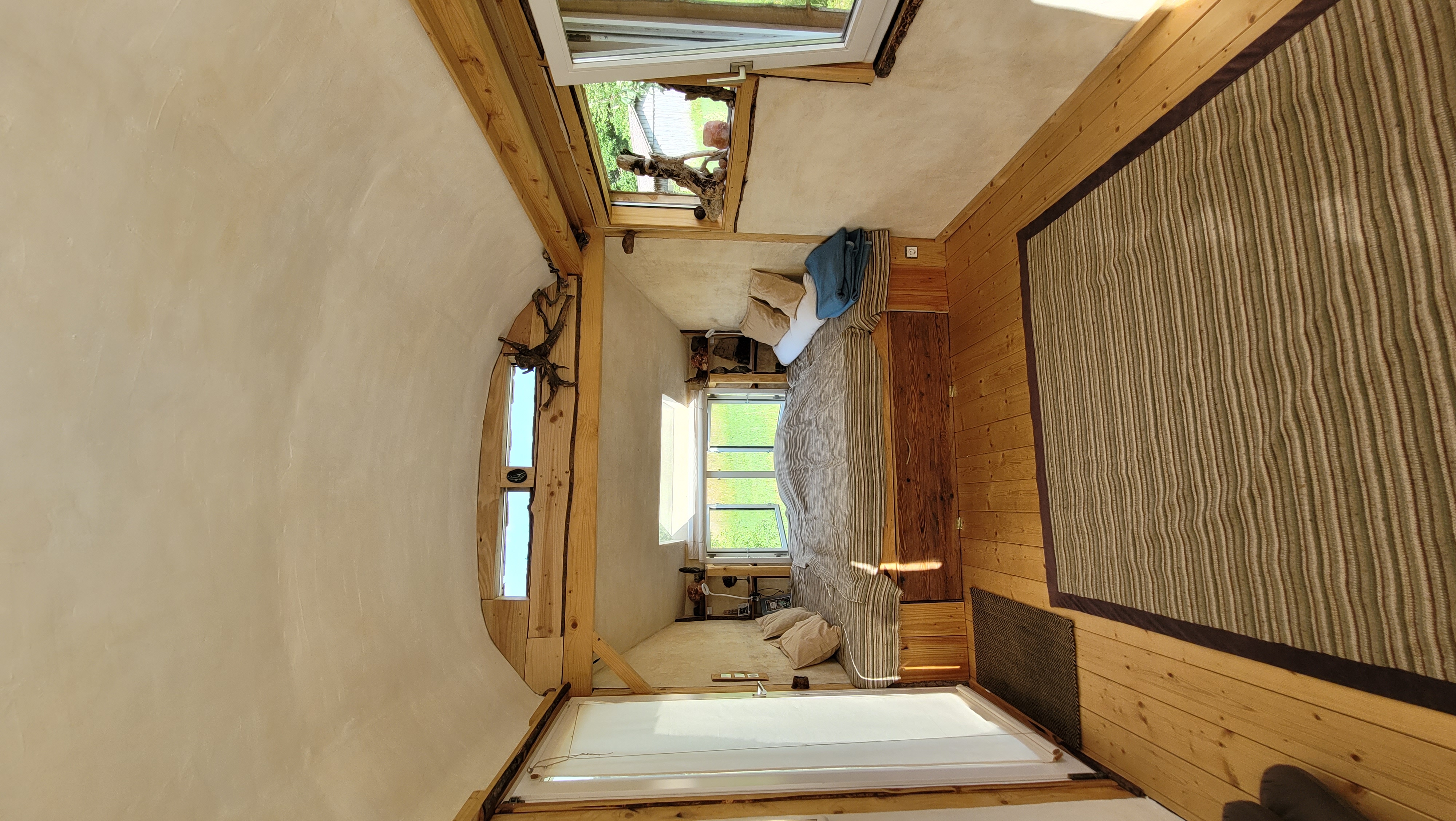 Die vielen Fenster rundherum vermitteln ein wohliges "Drinnen-wie-Draußen" Gefühl - sogar über dem Bett mit Blick in den Himmel.